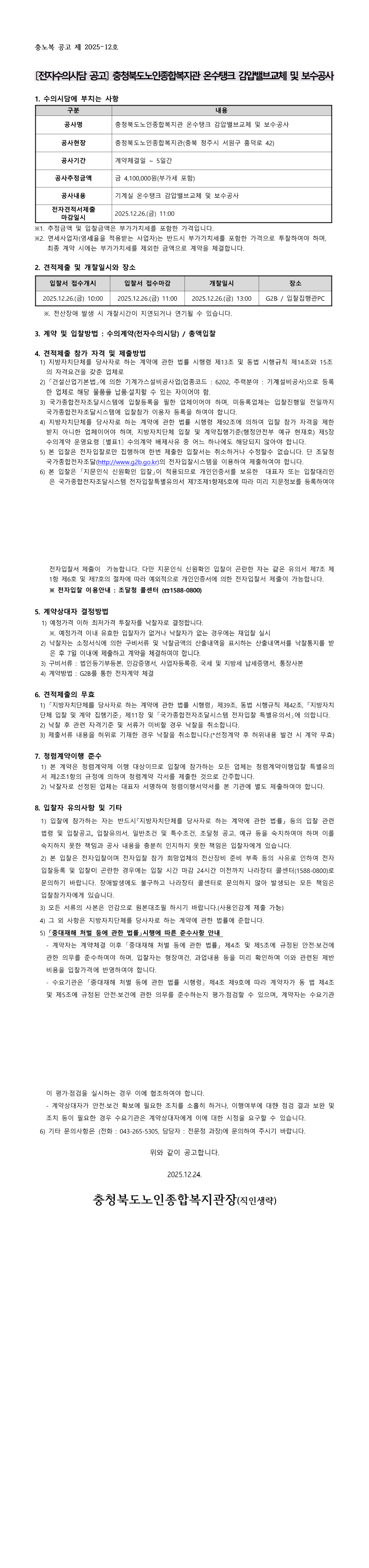 충청북도노인종합복지관 온수탱크 감압밸브교체 및 보수공사 |