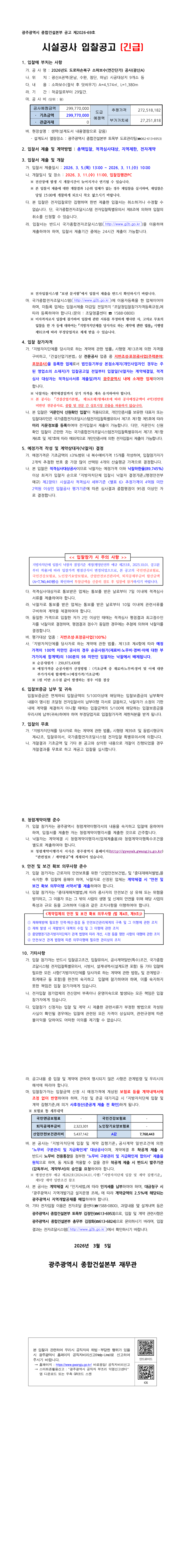 2026년도 도로파손복구 소파보수(연간단가) 공사(광산A) |