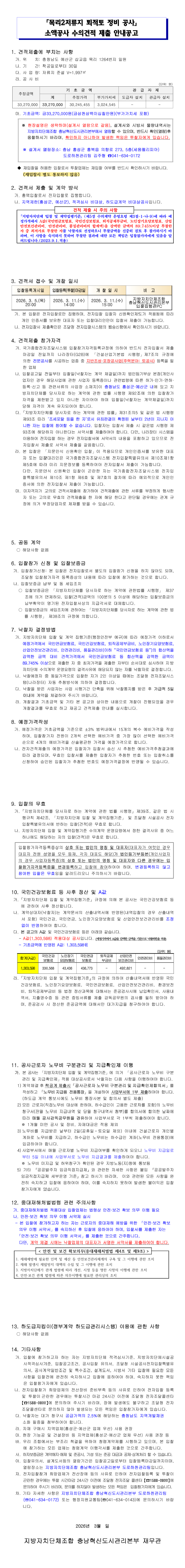 「목리2저류지 퇴적토 정비 공사」소액공사 수의견적 제출 안내 공고 |