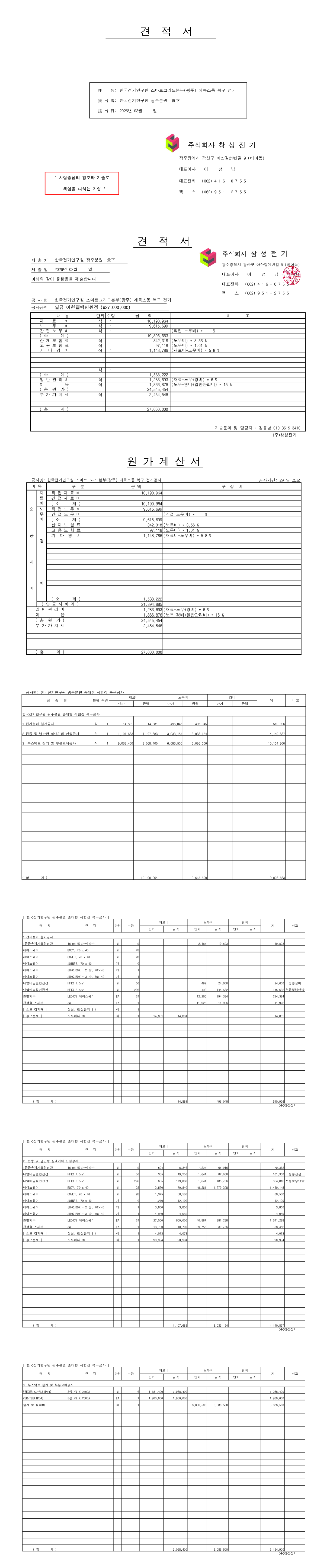 한국전기연구원 스마트그리드본부(광주) 레독스동 복구 전기공사 |