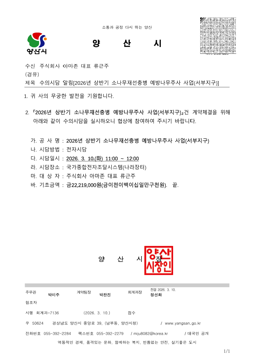 2026년 상반기 소나무재선충병 예방나무주사 사업(서부지구) |