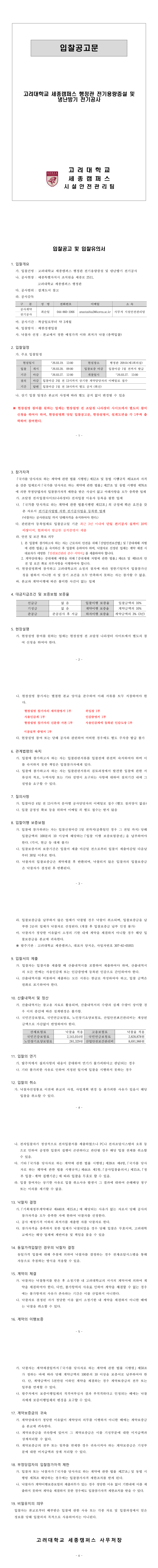 고려대학교 세종캠퍼스 행정관 전기용량증설 및 냉난방기 전기공사 |