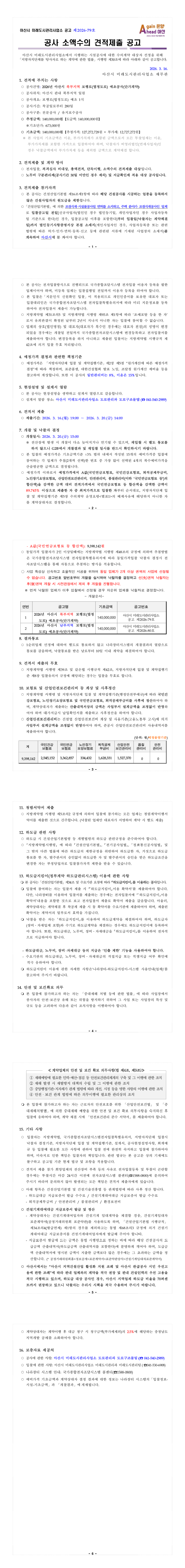 [새로공고] 2026년 아산시 북부지역 보행로(법정도로) 예초공사(단가계약) |