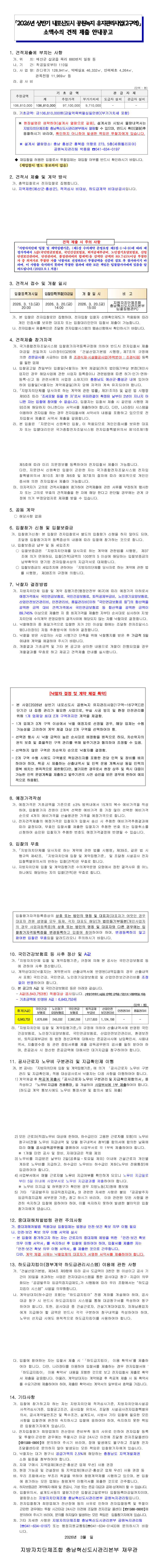 「2026년 상반기 내포신도시 공원녹지 유지관리사업(2구역)」 소액공사 수의견적 제출 안내공고 |