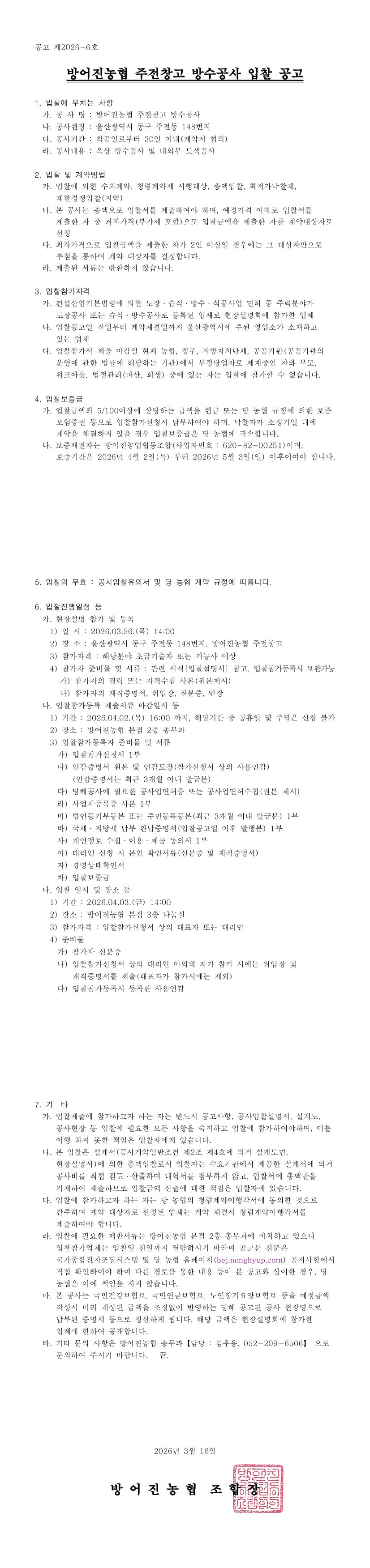 방어진농협 주전창고 방수공사 |