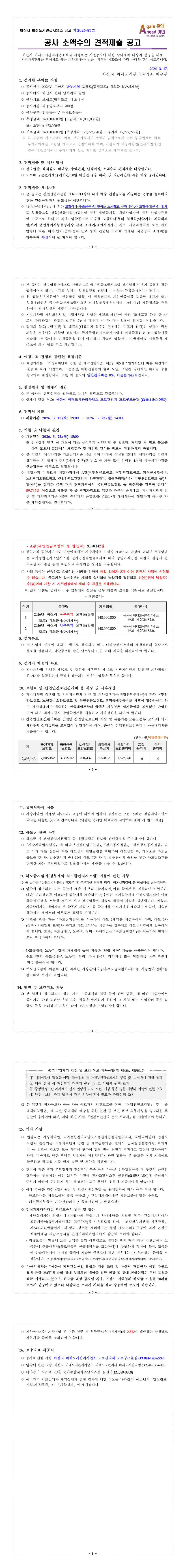 [새로공고] 2026년 아산시 남부지역 보행로(법정도로) 예초공사(단가계약) |