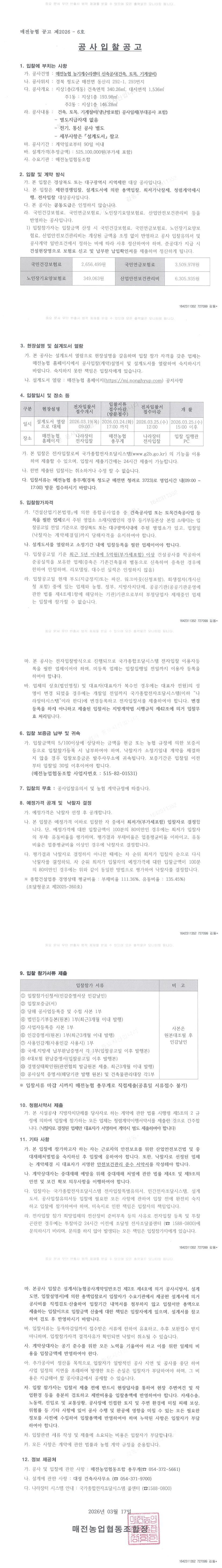 매전농협 농기계수리센터 신축공사(건축,토목,기계설비) |