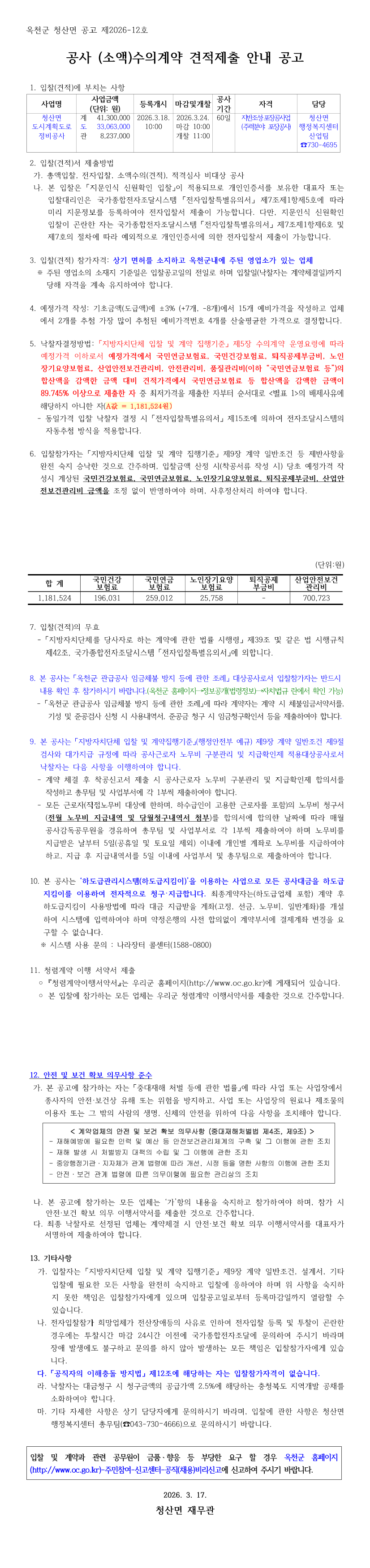 청산면 도시계획도로 정비공사 |