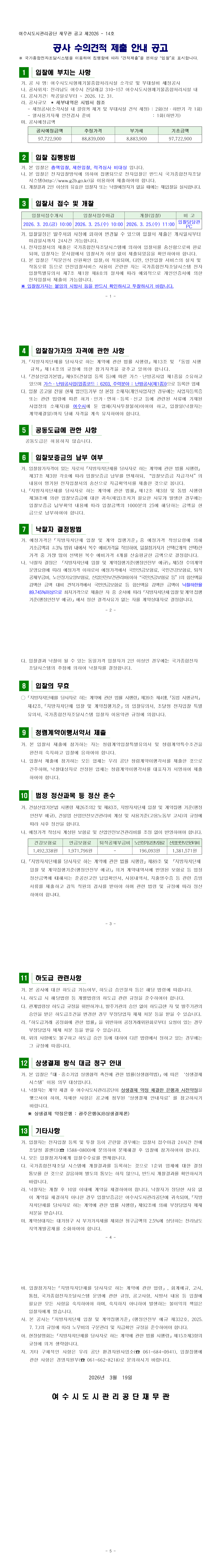 여수시도시형폐기물종합처리시설 소각로 및 부대설비 세정공사 |