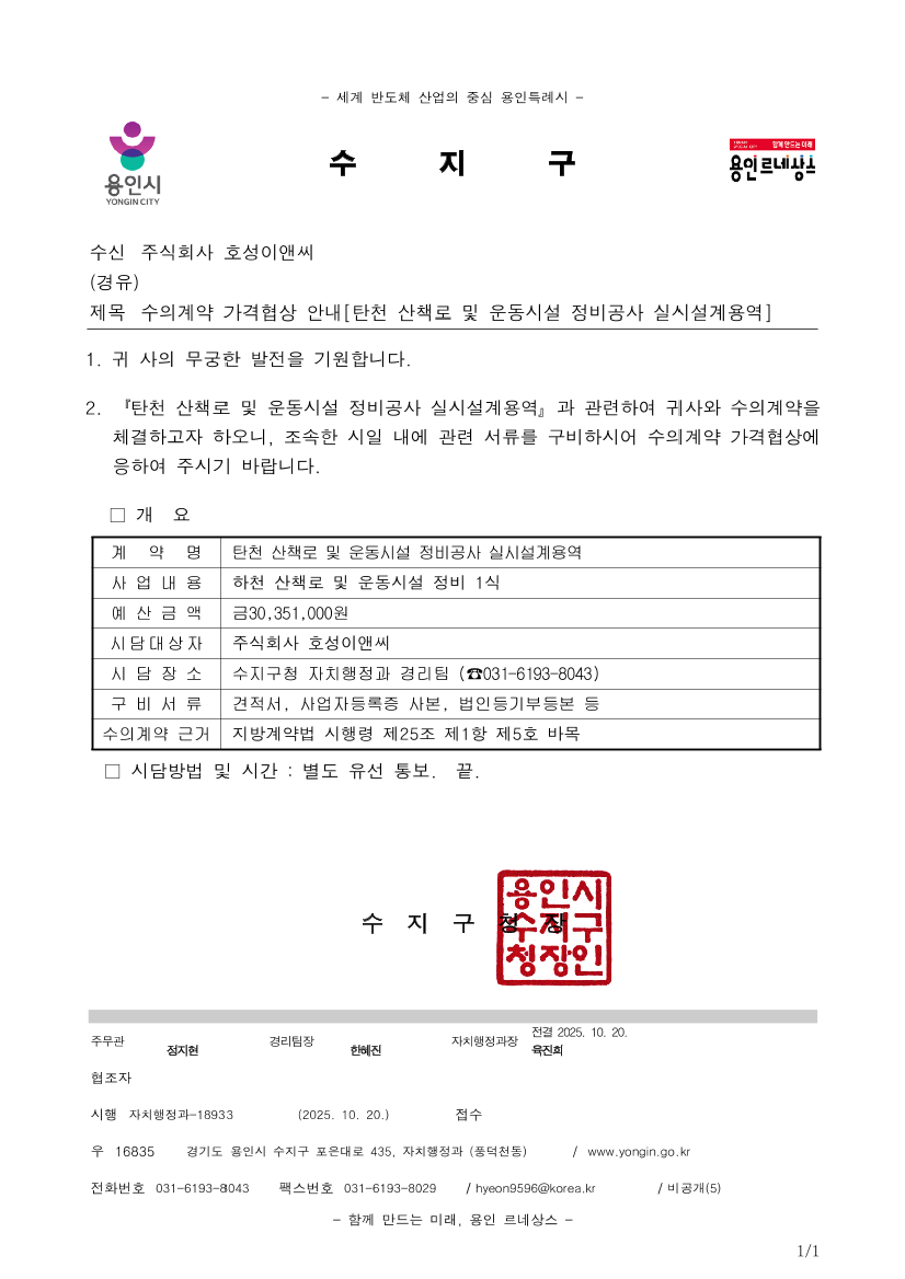 (수의시담)탄천 산책로 및 운동시설 정비공사 실시설계용역 |