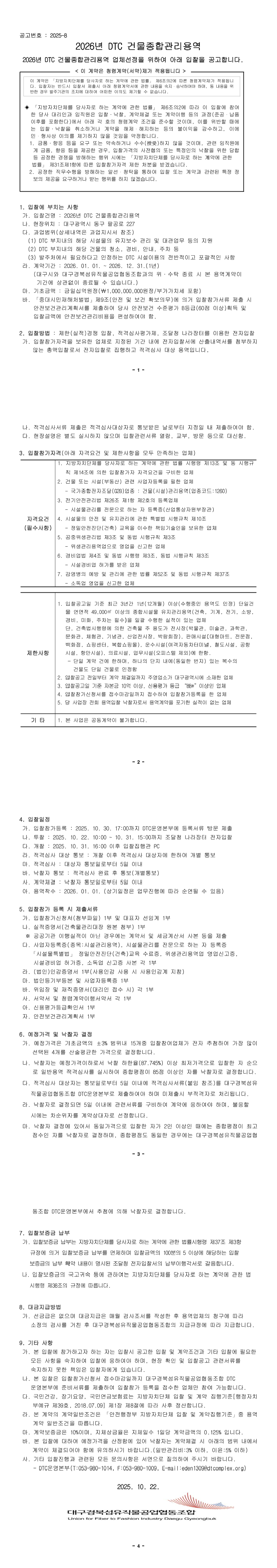 2026년 DTC 건물종합관리용역 |