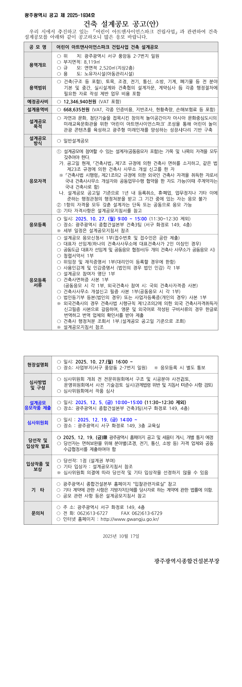 어린이 아트앤사이언스파크 건립사업 건축 설계공모 |