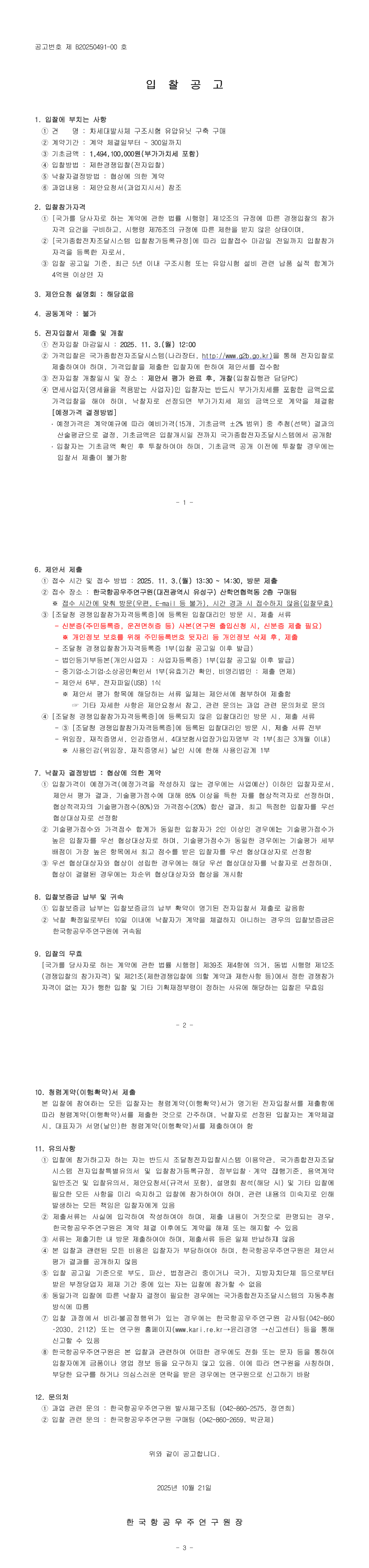 차세대발사체 구조시험 유압유닛 구축 구매 |