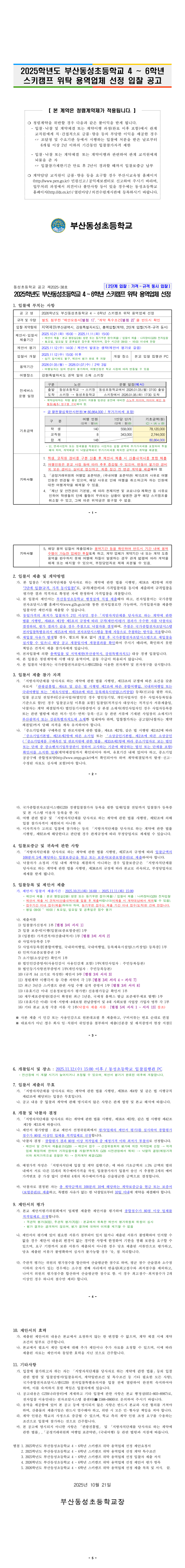 2025학년도 부산동성초등학교 4 ~ 6학년 스키캠프 용역업체 선정 |