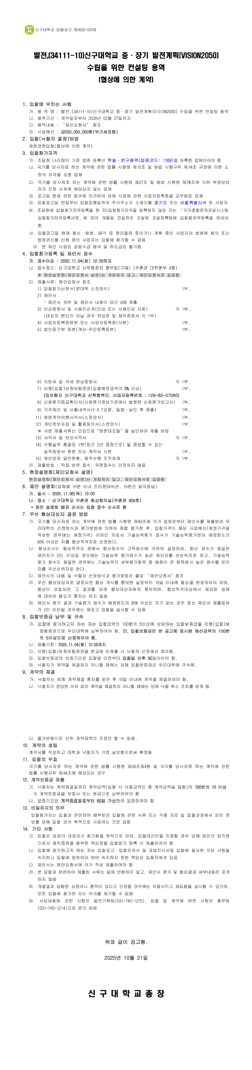 발전,(34111-10)신구대학교 중·장기 발전계획(VISION2050) 수립을 위한 컨설팅 용역(협상에 의한 계약) |