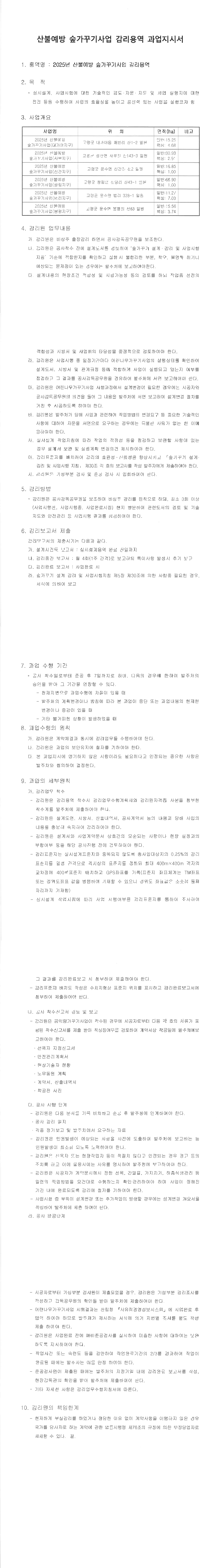 2025년 산불예방숲가꾸기사업(사부지구)감리용역 |