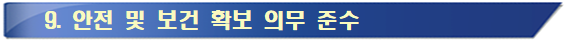 나. 계약상대자는 중대재해 예방을 위해「중대재해 처벌 등에 관한 법률」 제4조 및 제9조에 따라 안전 및 보건 확보 의무사항을 다음과 같이 이행하여야 합니다.
