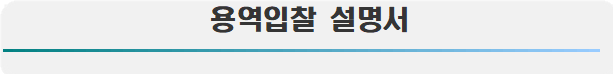 이 입찰에 참가하는 자는 다음의 입찰 설명서를 구성하는 공고서 및 각종 규정, 규격서 등을 반드시 열람하고 숙지하여야 하며, 숙지하지 못함에 따라 발생하는 모든 책임은 입찰자에게 있음을 알려드립니다.