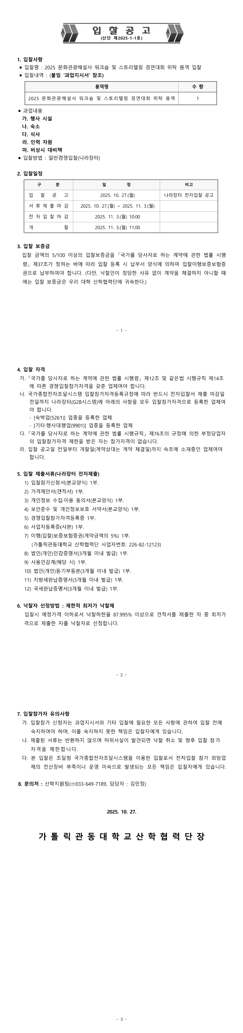 2025 문화관광해설사 워크숍 및 스토리텔링 경연대회 위탁 용역 입찰 |