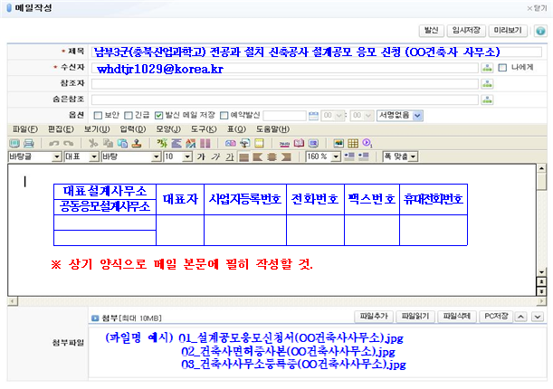 ※ USB는 표면에 설계공모명을 기재한 백색 봉투에 담아서 제출함.
