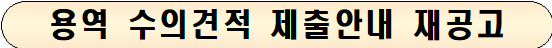 · 본 입찰에 참가하는 자는 입찰공고문, 지방자치단체 입찰 및 계약집행기준, 용역계약일반조건, 청렴계약 입찰특별유의서, 청렴계약특수조건 등을 숙지하고 입찰에 참가하여야 합니다. 숙지하지 못한 책임은 입찰 참가자에게 있습니다.
