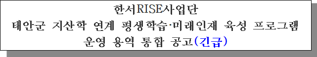 가. 입찰건명: 한서RISE사업단 태안군 지산학 연계 평생학습·미래인재 육성 프로그램 운영 용역 통합 공고(긴급)