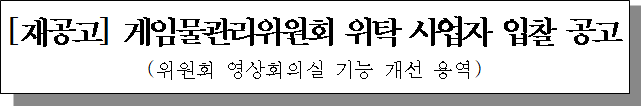게임물관리위원회에서는 ‘위원회 영상회의실 기능 개선 용역’ 위탁 사업자를 다음과 같이 모집합니다.