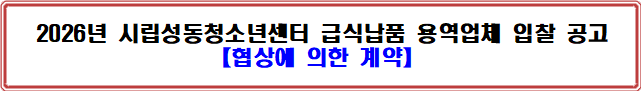 가. 용역명: 2026년도 시립성동청소년센터 급식납품 용역업체 입찰 공고