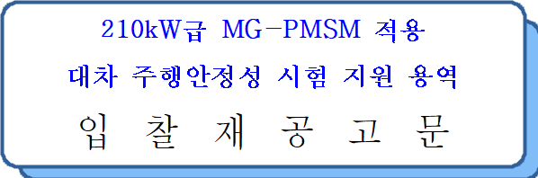 1. 입 찰 명 : 210kW급 MG-PMSM 적용 대차 주행안정성 시험 지원 용역