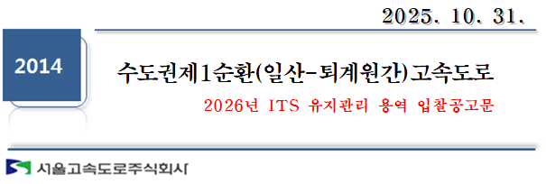 • 수도권제1순환(일산~퇴계원간)고속도로 2026년 ITS 유지관리 용역