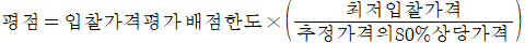 [평점 = 입찰가격배점한도 × (최저입찰가격/해당입찰가격)]