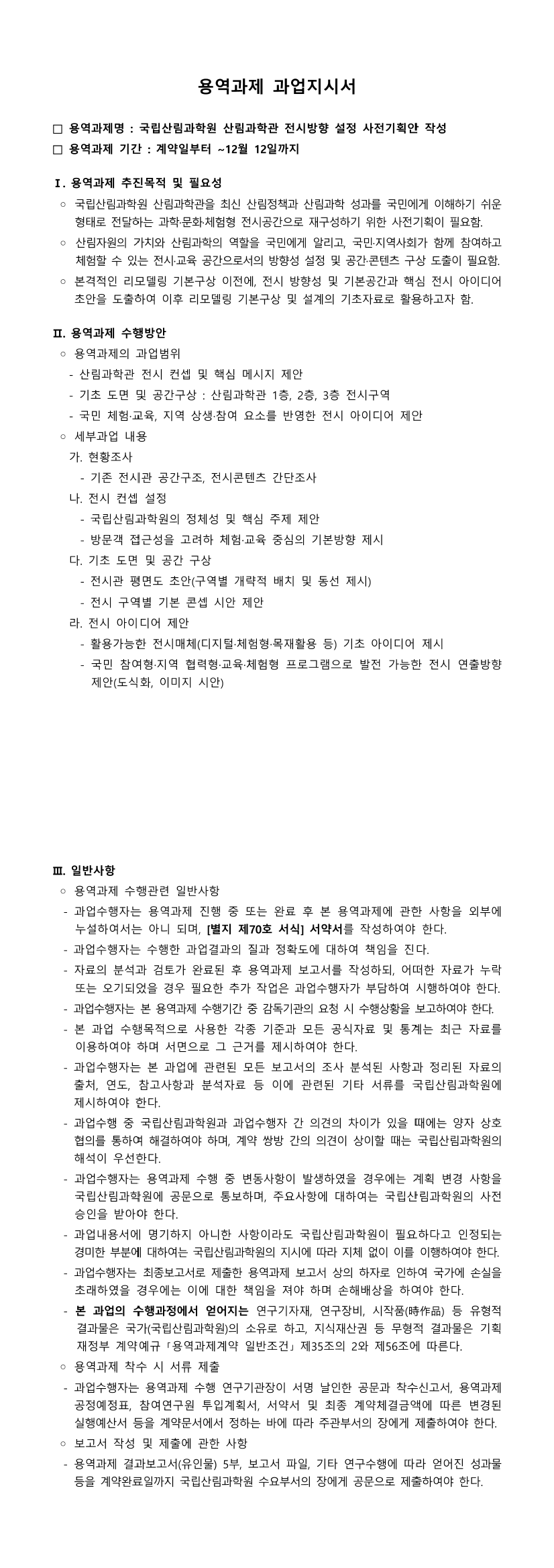 (용역) 국립산림과학원 산림과학원 전시방향 설정 사전기획안 작성 |