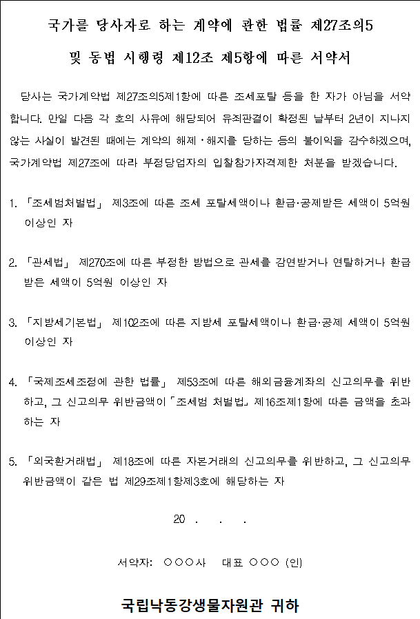 ․본인은 낙찰후 계약 미체결시 국립낙동강생물자원관에 낙찰금액에 해당하는 소정의 입찰보증금을 현금으로 납부할 것을 확약합니다.