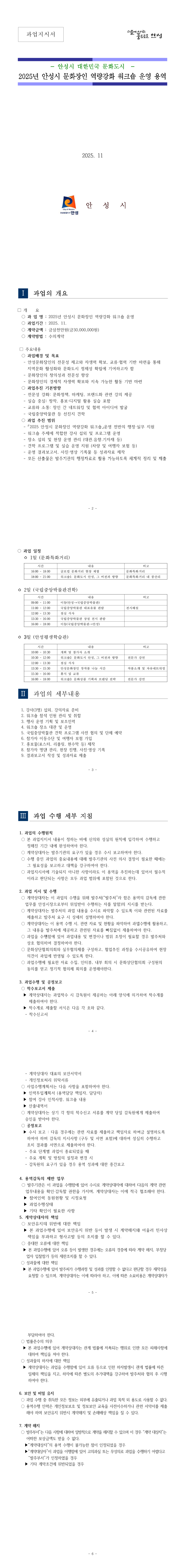 2025년 안성시 문화장인 역량강화 워크숍 운영 용역 |