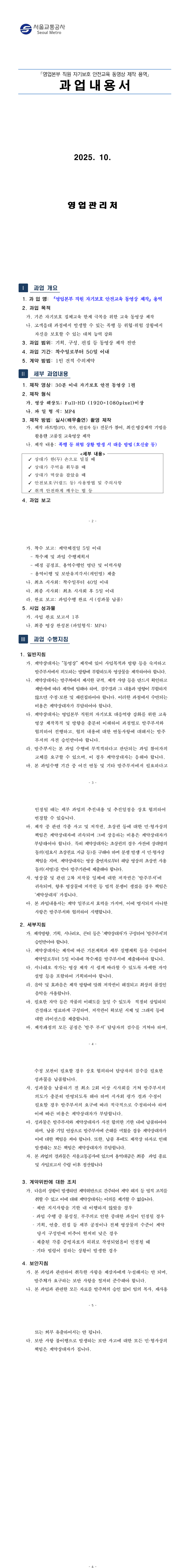 영업본부 직원 자기보호 안전교육 동영상 제작 용역 |