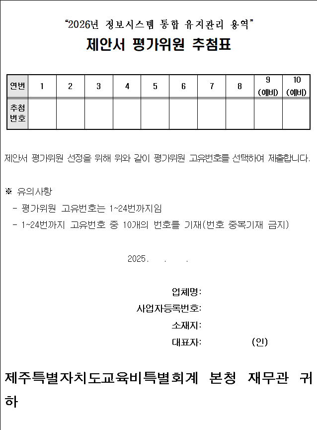 (단, 제안서 평가위원 추첨표는 대표사가 작성 제출)