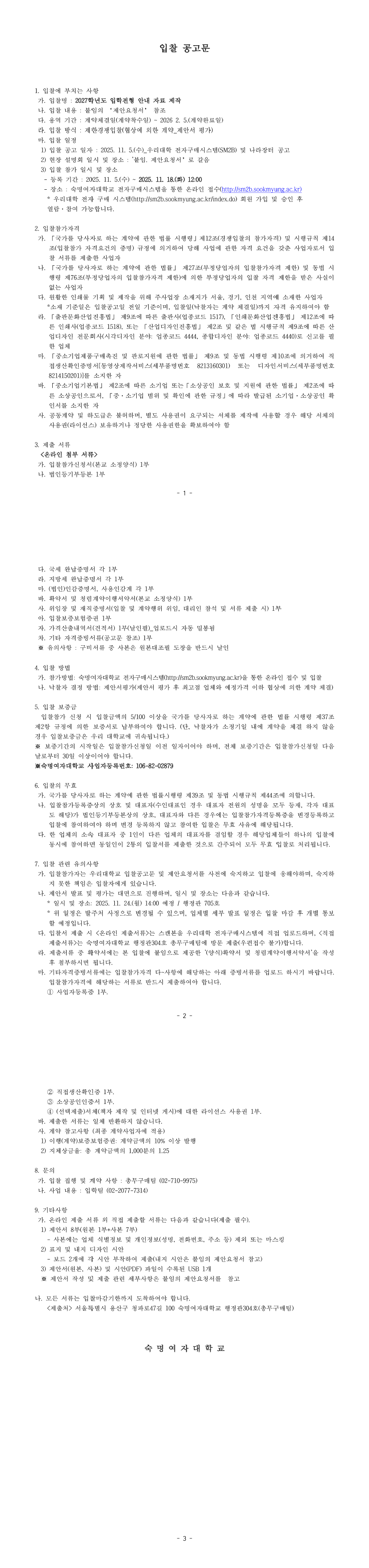 숙명여자대학교 2027학년도 입학전형 안내 자료 제작 |