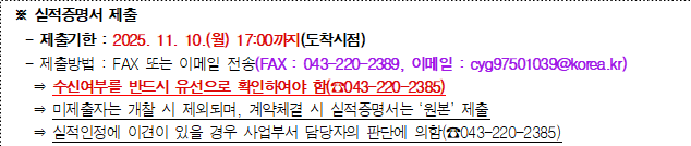 나. 과업지시서 내용 등 : 충청북도 안전정책과 비상대비민방위팀(☎ 043-220-2385)