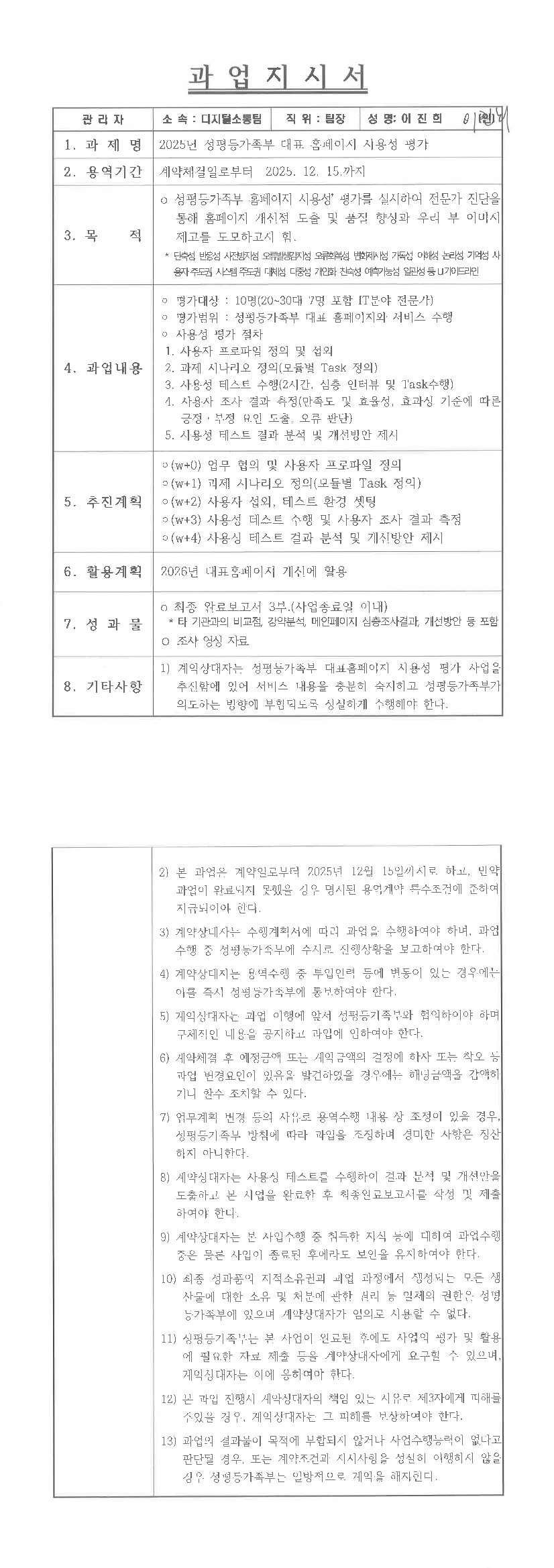 2025년 성평등가족부 대표 홈페이지 사용성 평가 |