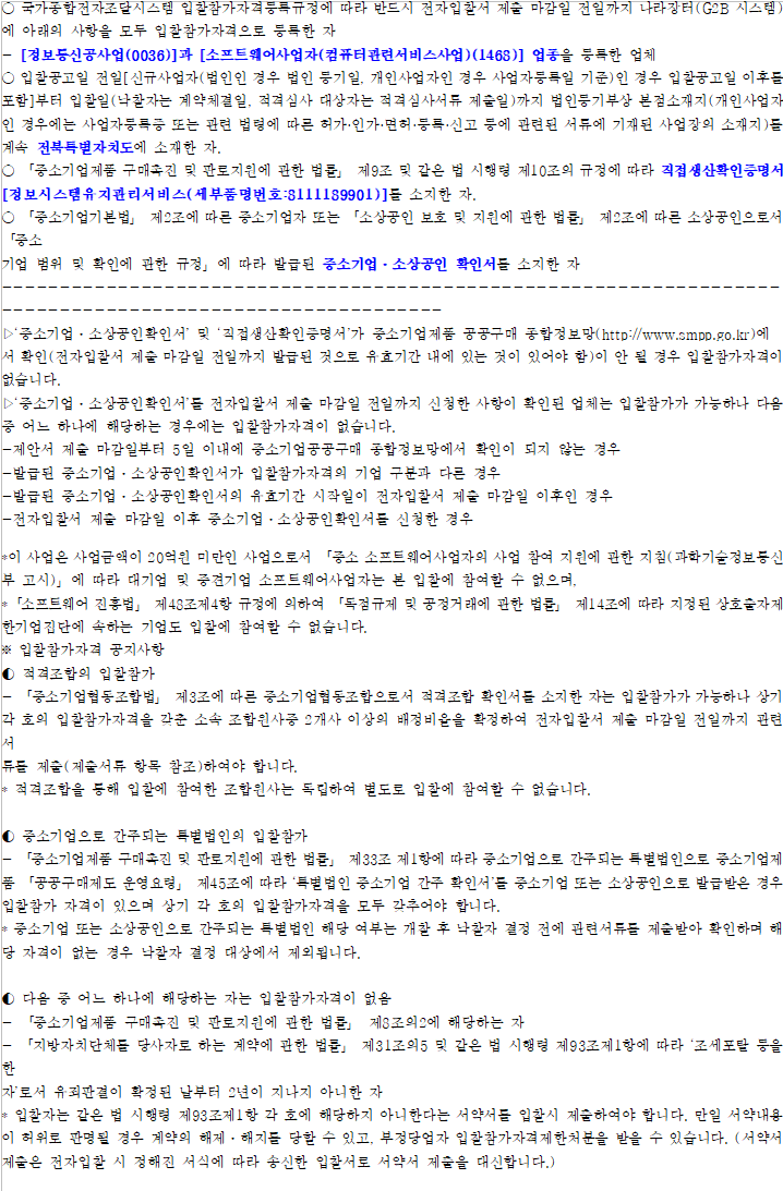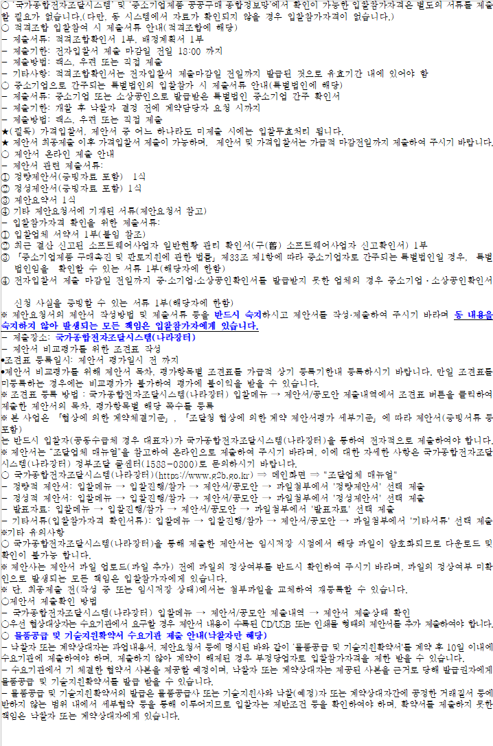 * 별도 제안서 발표는 하지 않습니다.(단, 입찰 참여업체는 나라장터에서 실시간 온라인 답변등록)