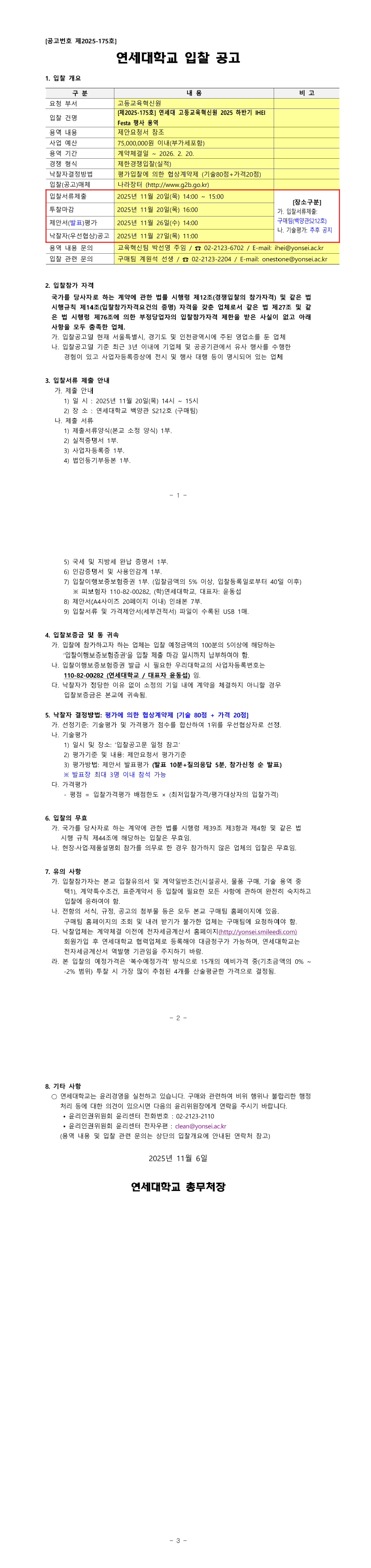 연세대 고등교육혁신원 2025 하반기 IHEI Festa 행사 용역 |