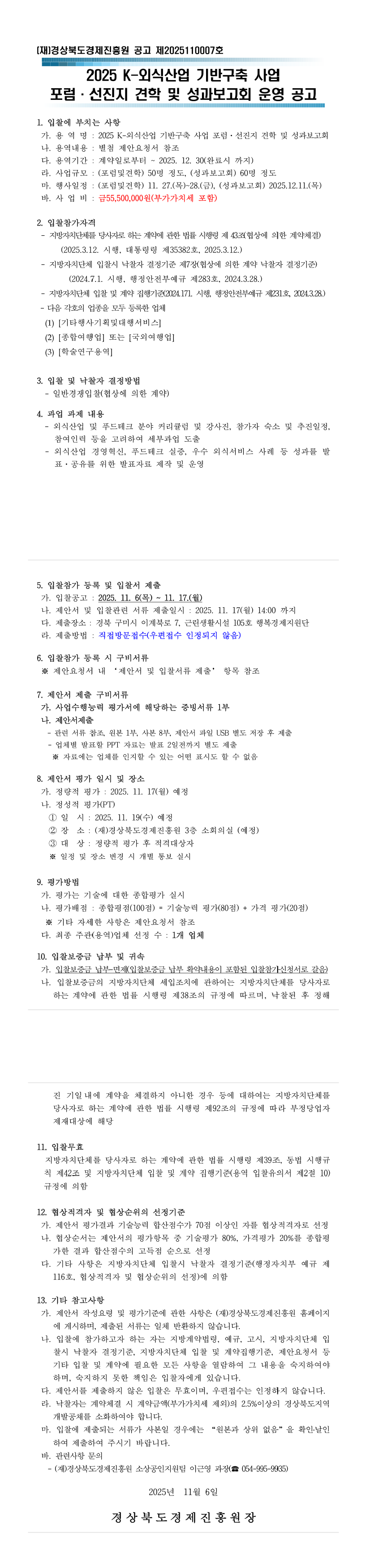 「2025 K-외식산업 기반구축지원」 견학 및 성과보고회 운영 용역 |
