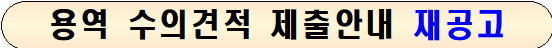 - 개찰 후 낙찰예정자가 없을 경우(별도 통보 없음-투찰자 확인) 재입찰을 실시할수있으며, 재입찰일 10:00까지 국가종합전자조달시스템에서 재투찰하여야 합니다.