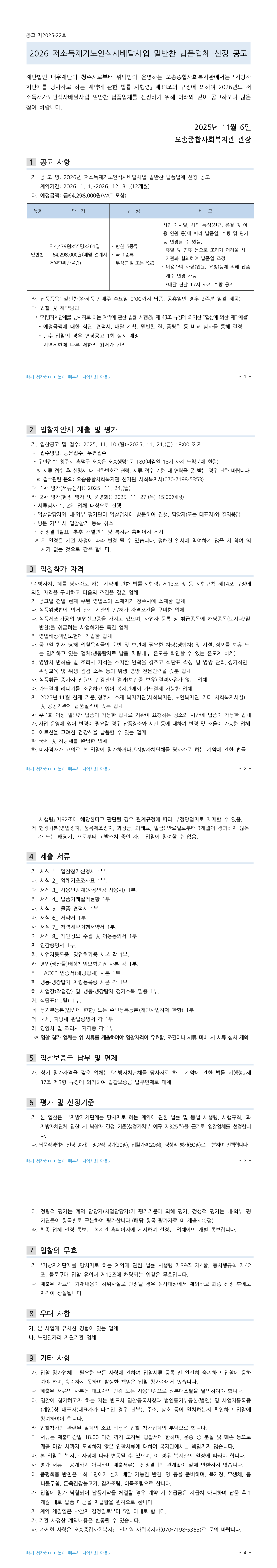 2026 저소득재가노인식사배달사업 밑반찬 납품업체 선정 입찰 공고 |