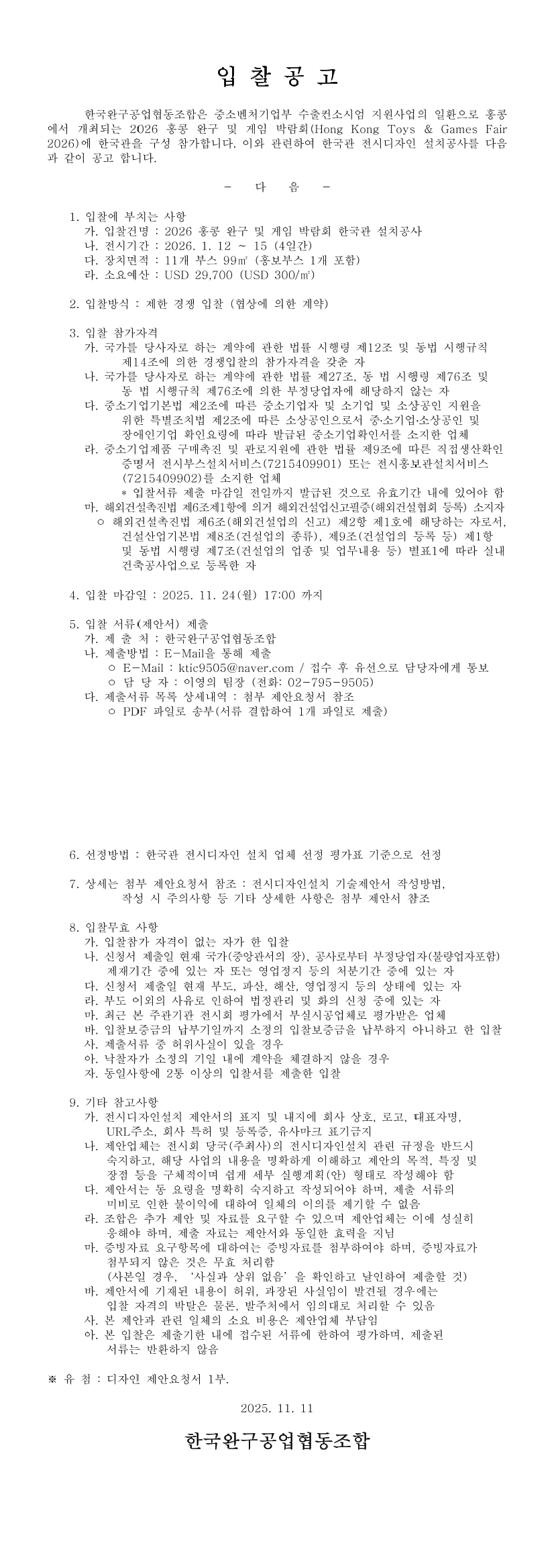 2026 홍콩 완구 및 게임 박람회 한국관 설치 공사 |