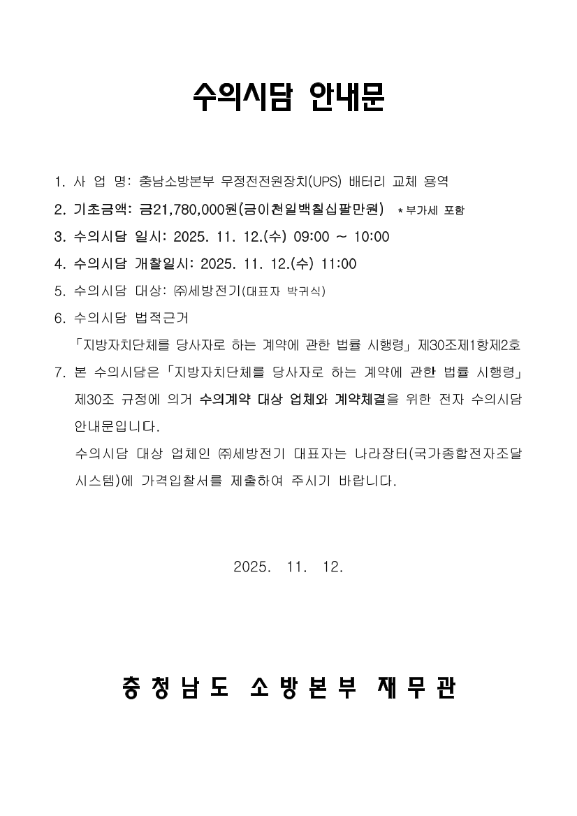 충남소방본부 무정전전원장치(UPS) 배터리 교체 용역 |