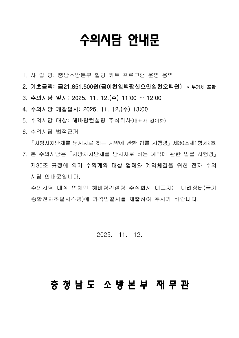 충남소방본부 힐링 키트 프로그램 운영 용역 |