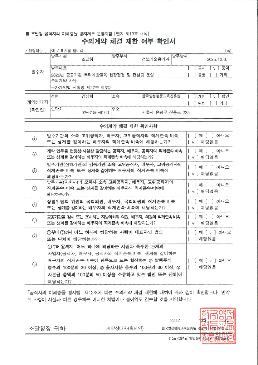 2026년 공공기관 폭력예방교육 현장점검 및 컨설팅 사업 |