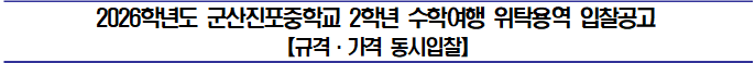 ◦2026학년도 군산진포중학교 2학년 수학여행 위탁용역