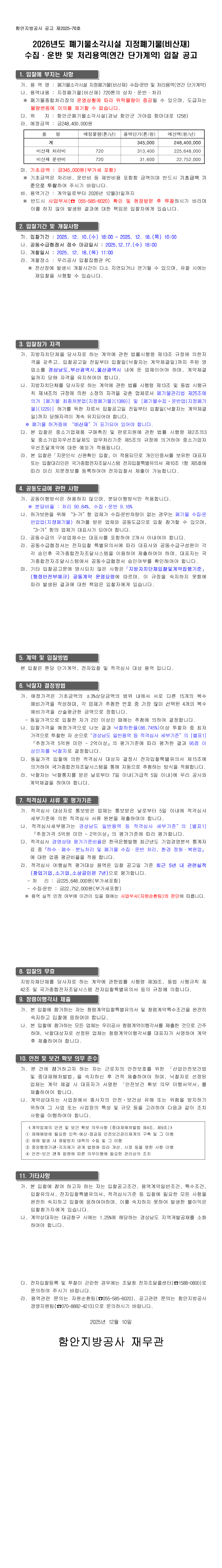 2026년도 폐기물소각시설 지정폐기물(비산재) 수집·운반 및 처리용역 |